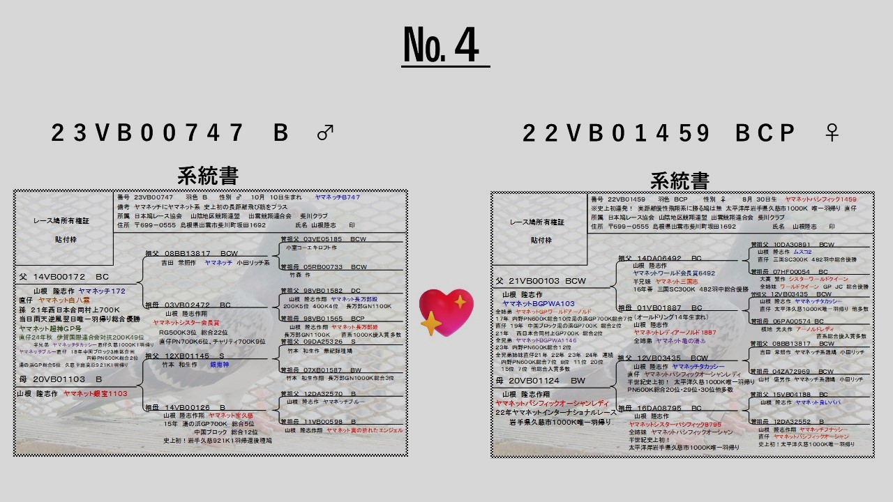 | 備考: | 2025年生まれ ♂♀在舎 確認願います 併せて25年秋RG300K記録鳩あり在舎確認願います |