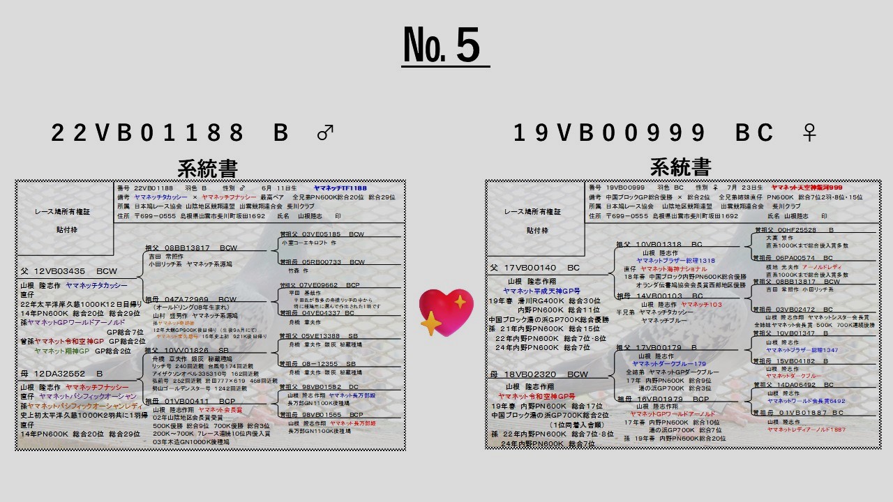 | 備考: | 25年生まれ♂♀在舎確認願います 併せて25年秋RG300K記録鳩あり在舎確認願います |